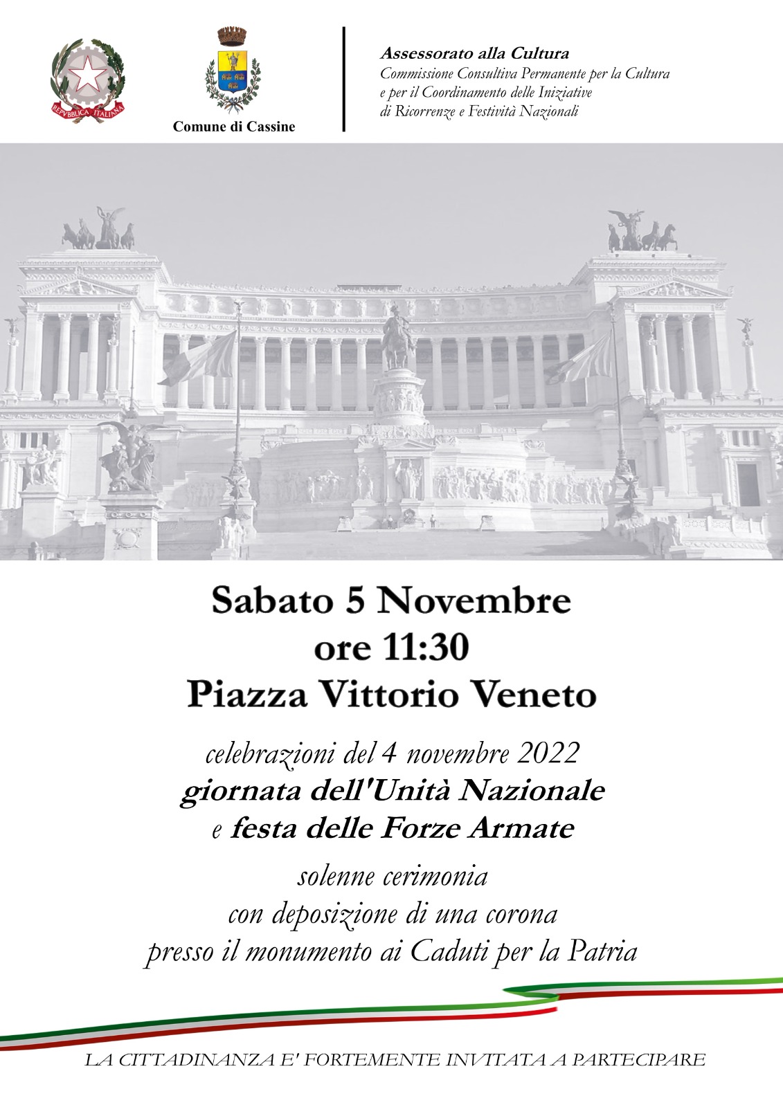 Ricorrenza della giornata del 4 Novembre dell'Unità Nazionale e Festa delle Forze Armate