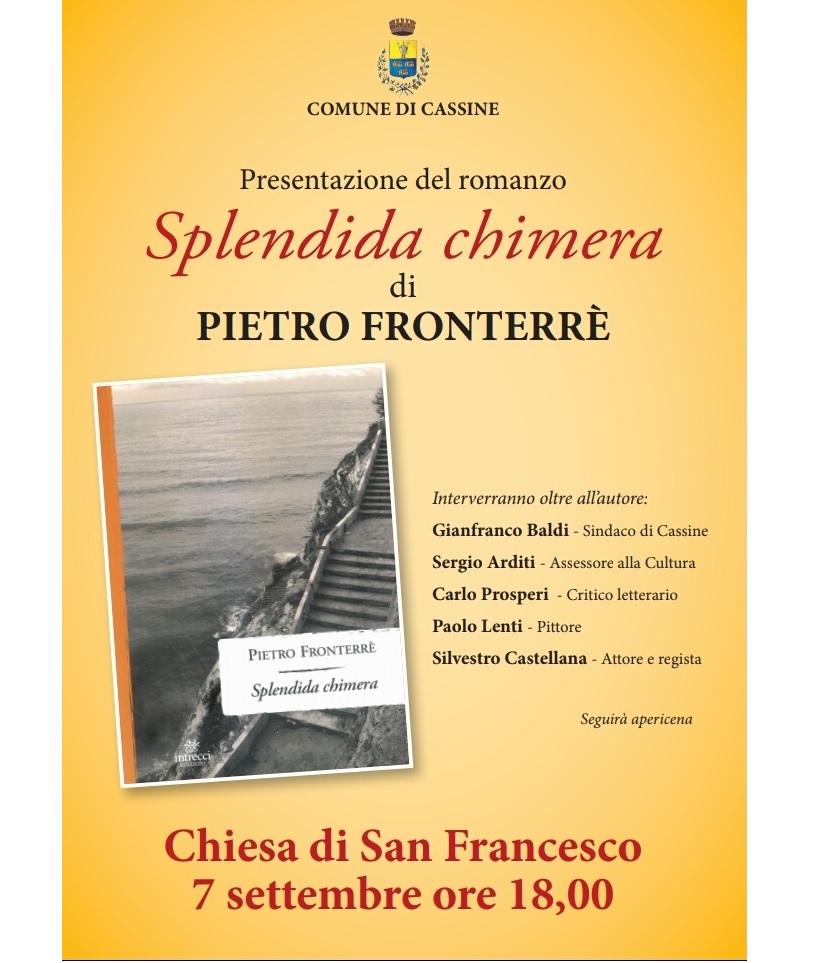 Presso la Chiesa di San Francesco in data 7 Settembre 2018 ore 18,00 presentazione del Romanzo "Splendida chimera"