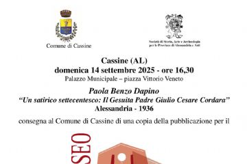 Presentazione e consegna del saggio: Un satirico settecentesco: Il Gesuita Padre Giulio Cesare Cordara” scritto da Paola Benzo Dapino