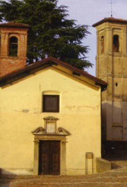 Sulla parete di fondo, sopra una nicchia si vede un affresco settecentesco dell'Adorazione dei Magi, alle pareti bassorilievi in gesso dello scultore milanese Leone Lodi del secolo scorso.